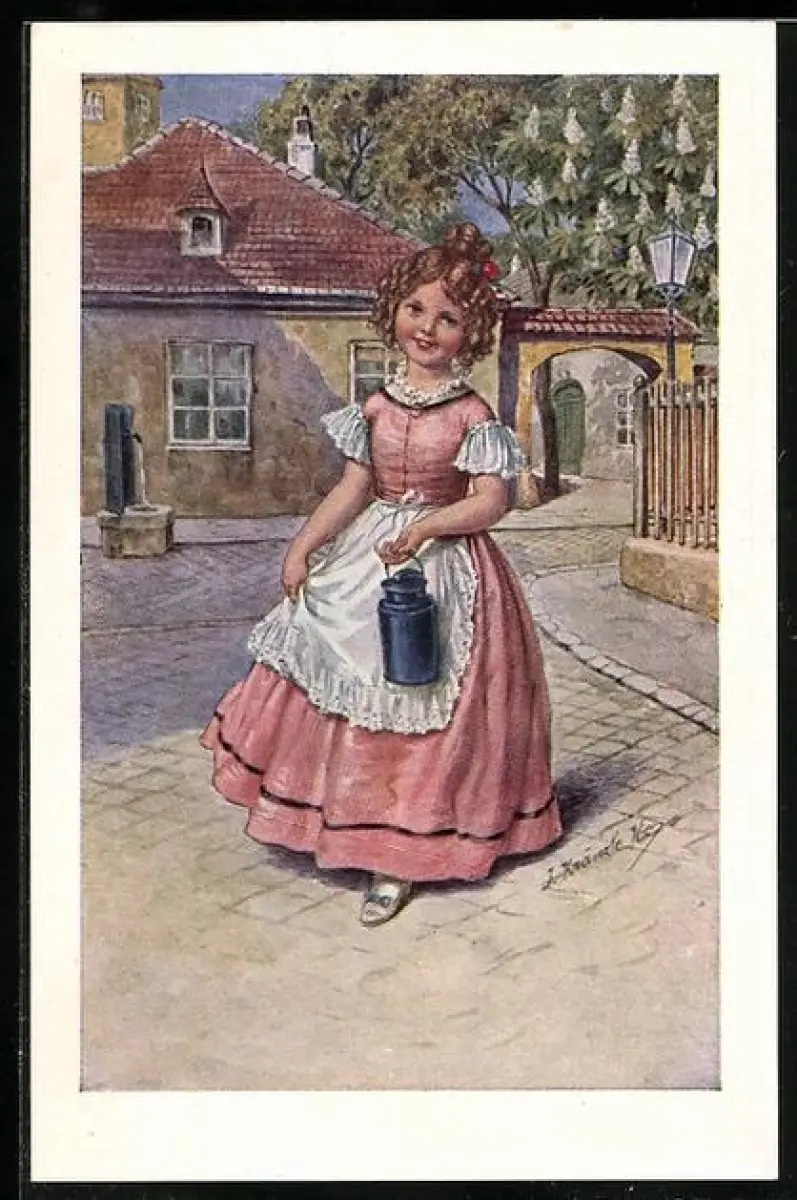 Künstler-AK Kränzle: Junges Mädchen mit lockigem Haar auf einer Strasse