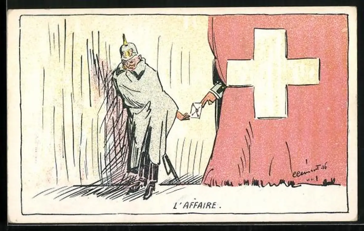 Künstler-AK L`Affaire, Schweizer steckt deutschem General eine Nachricht zu