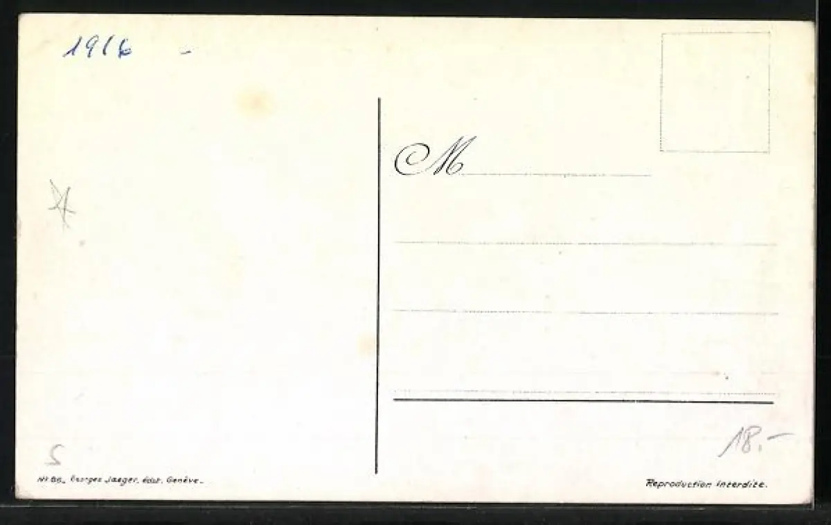 Personenbezogene Daten auf der Rückseite der Karte wurden durch blauen Textmarker unkenntlich gemacht. Die blauen Stellen sind auf die Vorderseite durchgeweicht und wirken sich negativ auf das Postkartenfoto aus