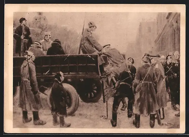 Künstler-AK L`arrét des généraux en Février, Revolution 1917
