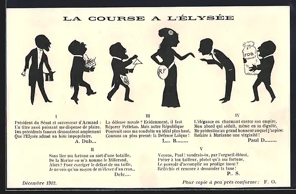 Künstler-AK La Course a l`Élyse, Französische Politiker in einer Reihe, Karikatur