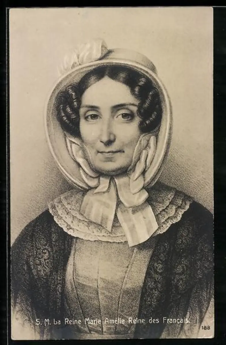 Künstler-AK La Reine Marie Amelie Reine von Frankreich mit Kopfbedeckung