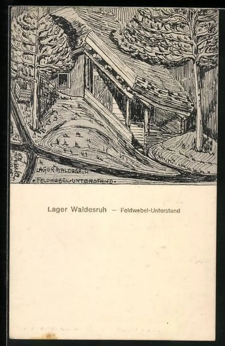 Künstler-AK Lager Waldesruh, Feldwebel-Unterstand