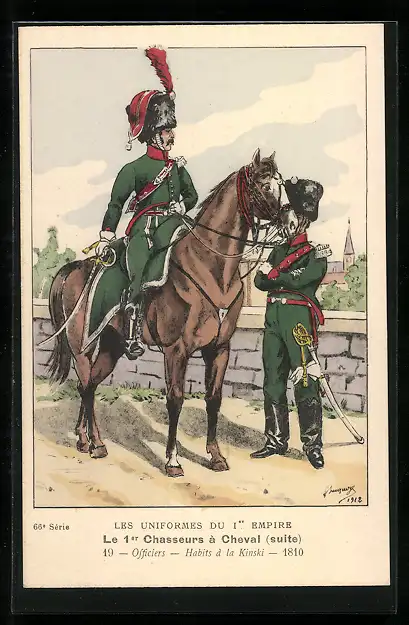 Künstler-AK Le 1er Chasseurs à Cheval, Officiers, Habits à la Kinski 1810