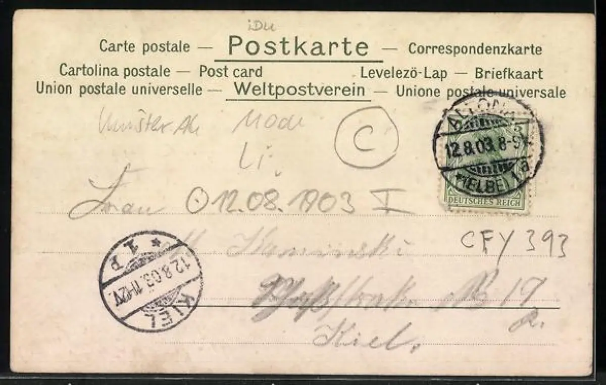 alte Ansichtskarte, gelaufen 1903, Stempelspur, guter Zustand