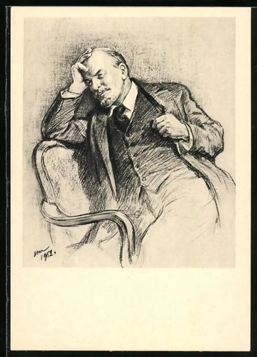 Künstler-AK Lenin auf einem Stuhl sitzend