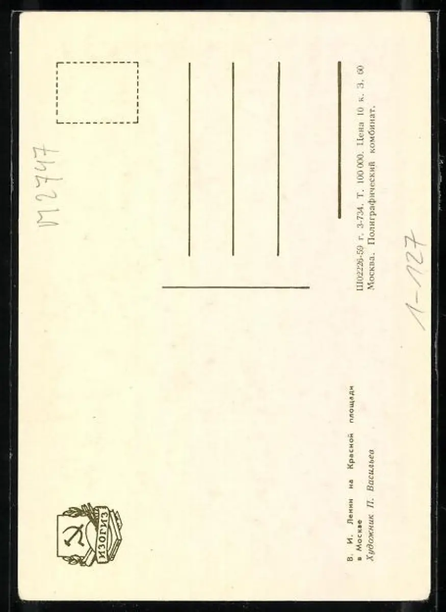 Personenbezogene Daten auf der Rückseite der Karte wurden durch blauen Textmarker unkenntlich gemacht. Die blauen Stellen sind auf die Vorderseite durchgeweicht und wirken sich negativ auf das Postkartenfoto aus