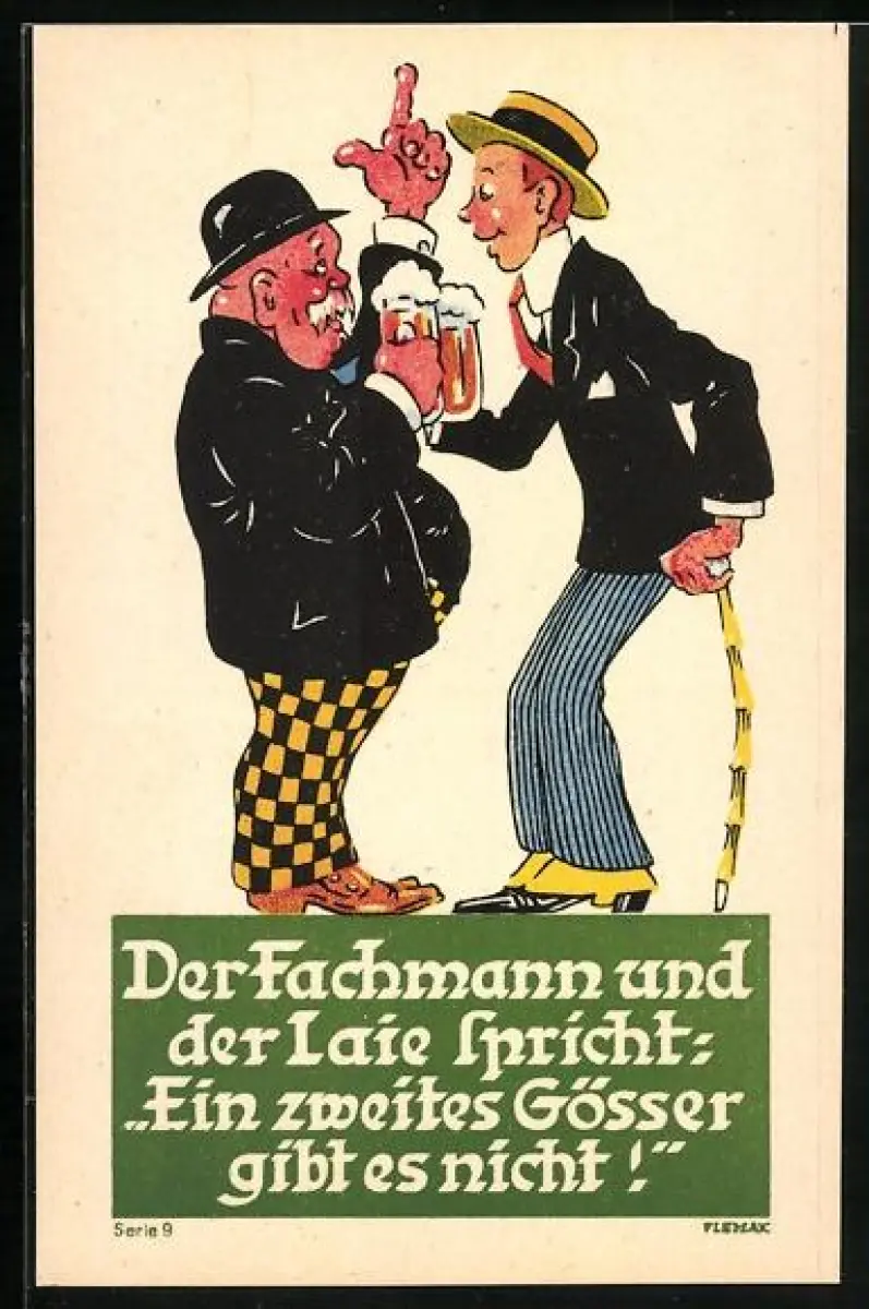 Künstler-AK Leoben-Göss, Gösser Brauerei, Der Fachmann und der Laie...