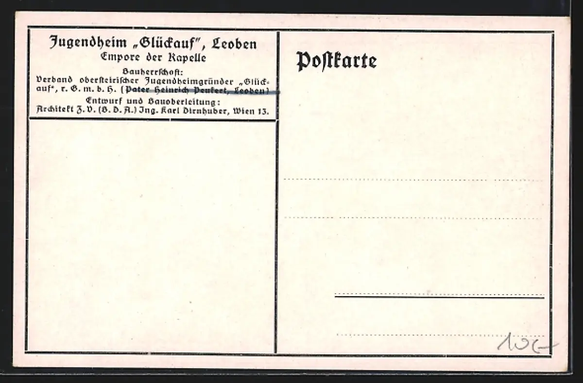 Künstler-AK Leoben, Jugendheim Glückauf, Empore der Kapelle