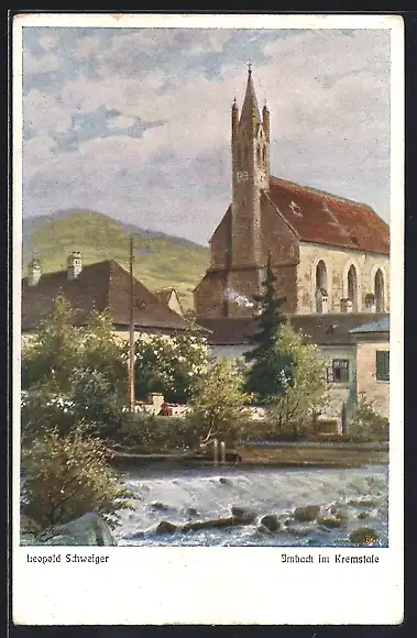 Künstler-AK Leopold Schweiger: Imbach, Ortsansicht mit Kirche