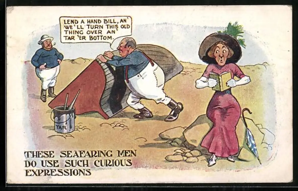 Künstler-AK Lesende Dame missversteht den Ausspruch eines Seemanns