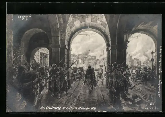 Künstler-AK Lille, Erstürmung der Stadt 1915