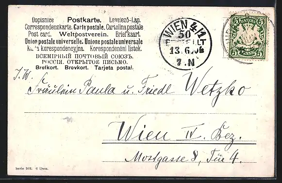 alte Ansichtskarte, gelaufen 1904, Stempelspur, guter Zustand