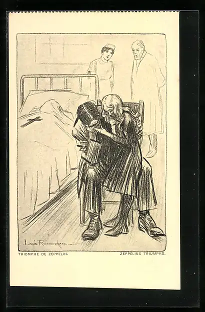 Künstler-AK Louis Raemaekers: Zeppelins Triumph, Vater und Tochter trauern um die Mutter