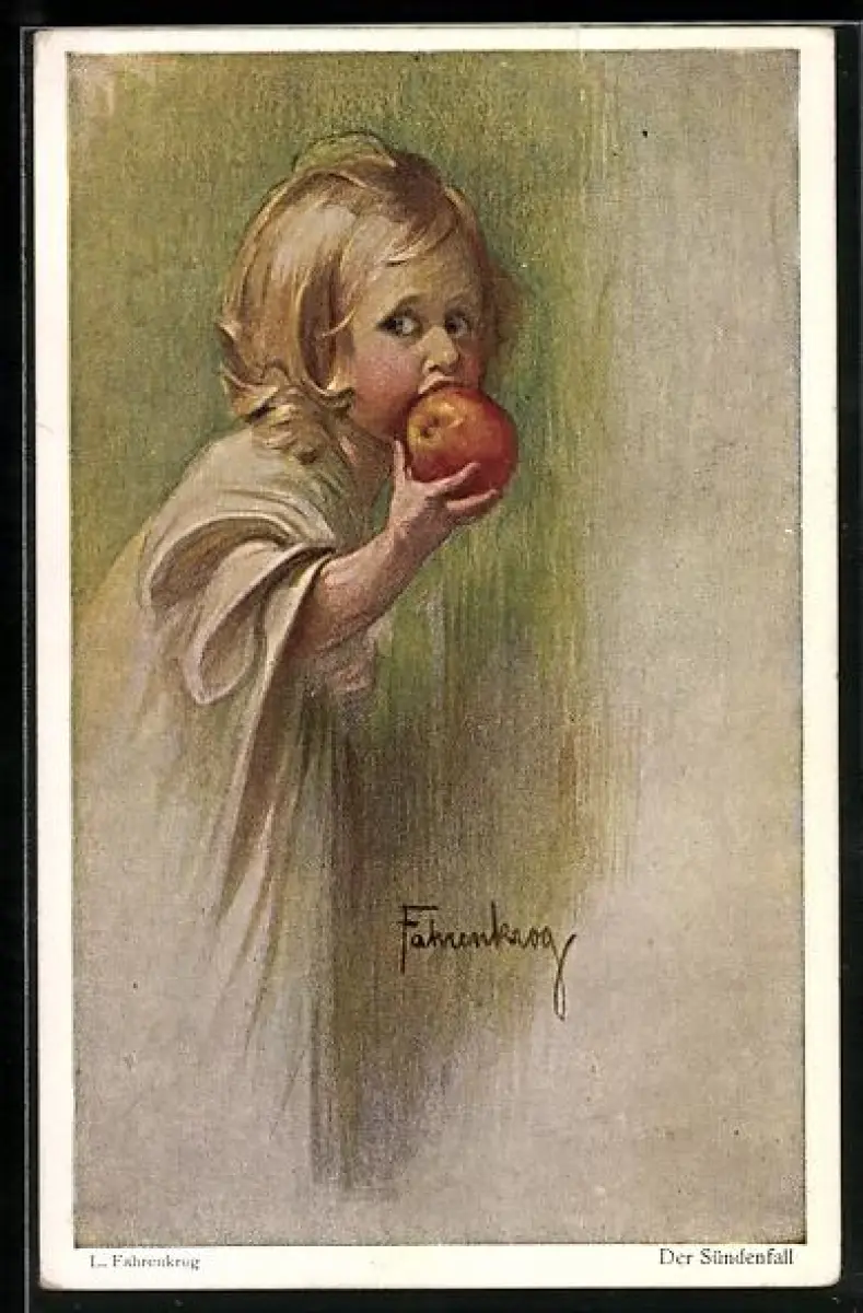 Künstler-AK Ludwig Fahrenkrog: Der Sündenfall, Mädchen beisst in den Apfel