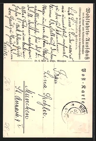 alte Ansichtskarte, gelaufen, Briefmarke entfernt, rückseitig Oberflächenschaden, guter Zustand