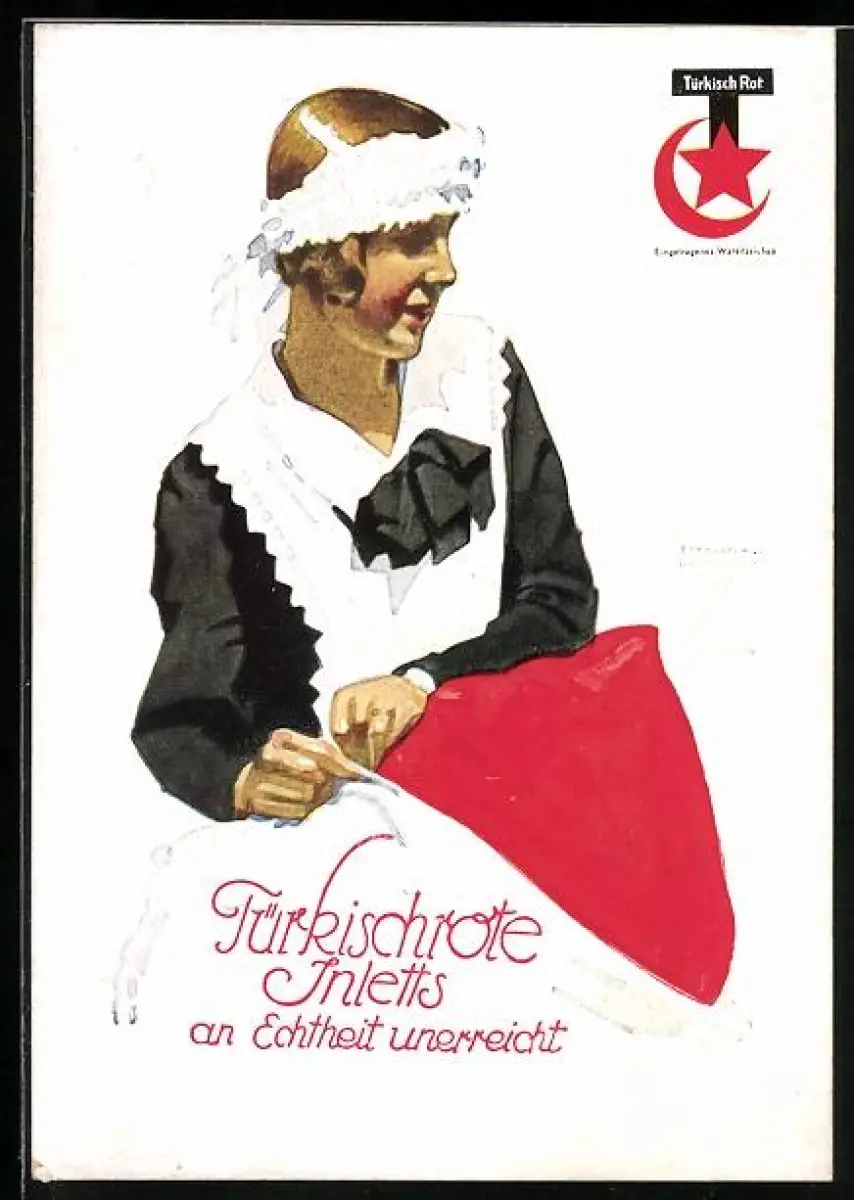 Künstler-AK Ludwig Hohlwein: Türkischrote Inlets an Echtheit unerreicht, Reklame