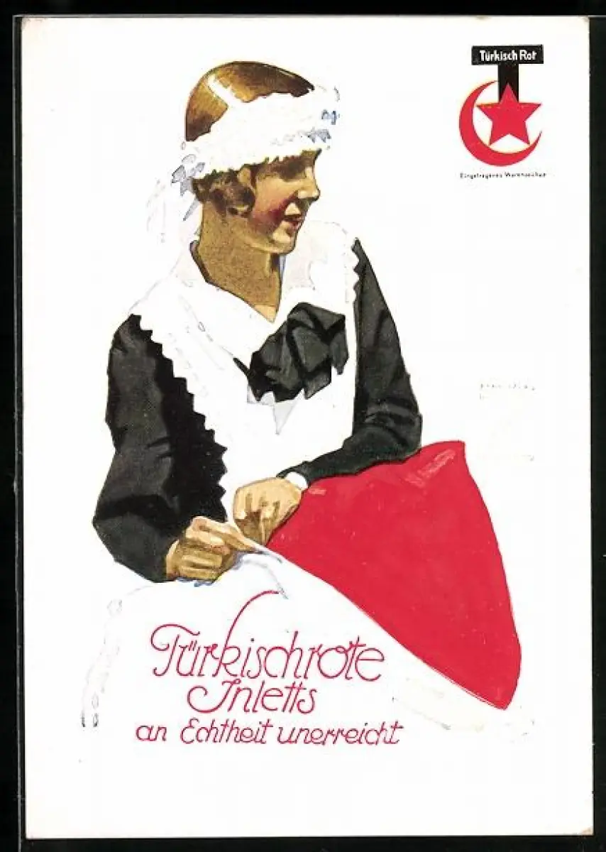 Künstler-AK Ludwig Hohlwein: Türkischrote Inlets an Echtheit unerreicht, Reklame
