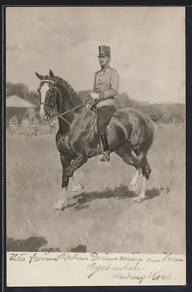 Künstler-AK Ludwig Koch: Soldat in Uniform zu Pferd, Autograph des Künstlers