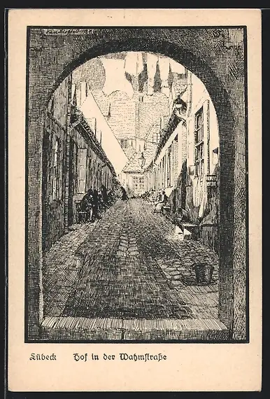 Künstler-AK Lübeck, Hof in der Wahmstrasse