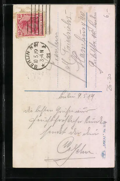 alte Ansichtskarte, gelaufen 1919, Stempelspur, guter Zustand