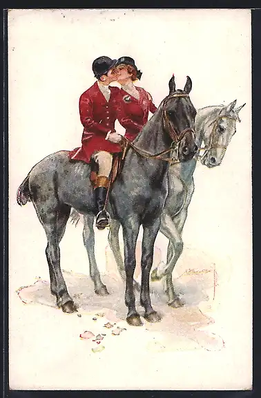 Künstler-AK Luis Usabal: Liebespaar auf Pferden