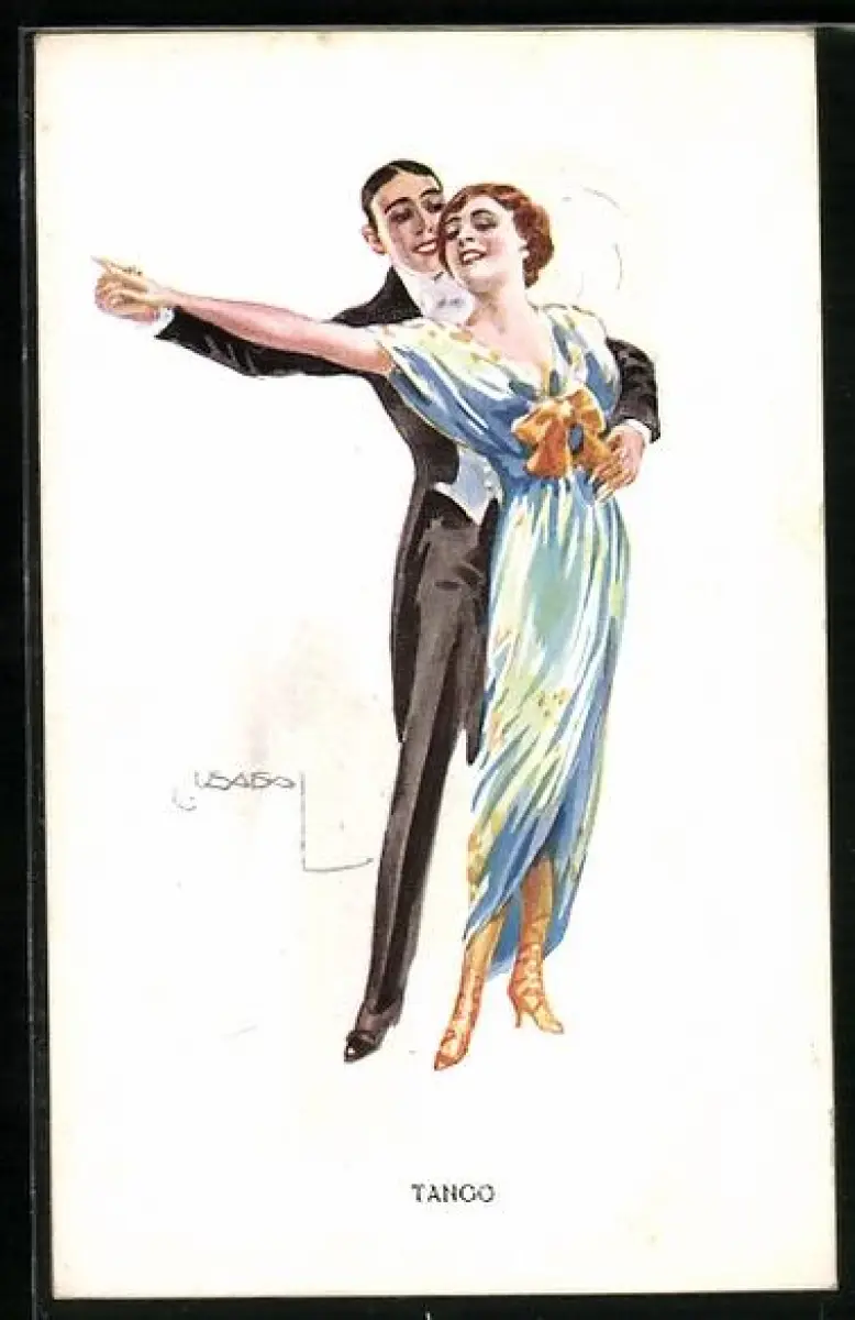 Künstler-AK Luis Usabal: Liebespaar tanzt den Tango