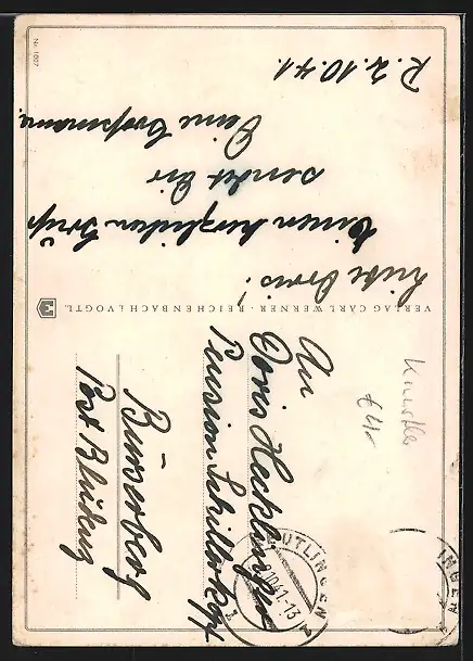 alte Ansichtskarte, gelaufen, Eckknick li. unten, Briefmarke entfernt, guter Zustand