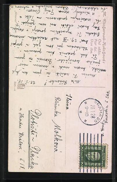 gelaufen 1928, Stempelspur, Eckknick re. oben, guter Zustand