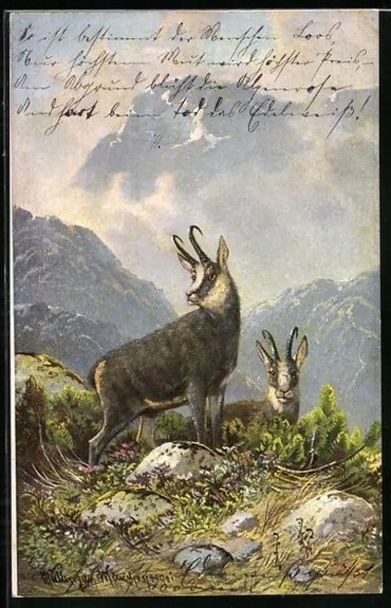Künstler-AK M.Müller jun.: Gemsen auf einem Berg