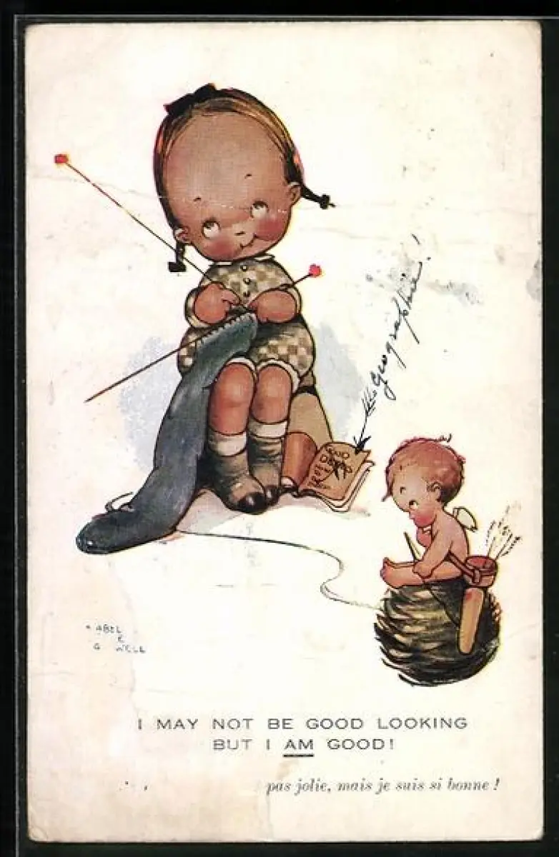Künstler-AK Mabel Lucie Attwell: I may not be good looking but I am good!, Amor mit Pfeil und Bogen