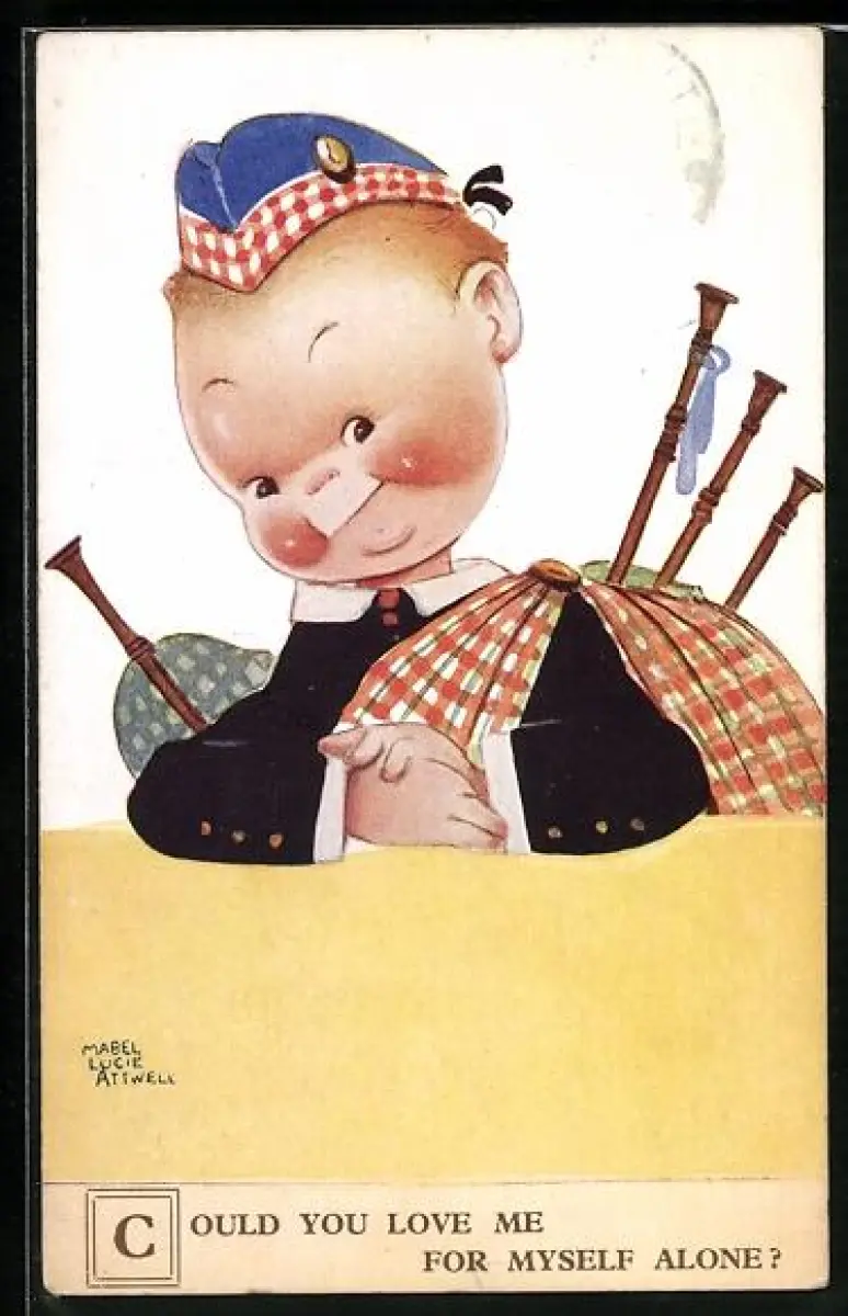 Künstler-AK Mabel Lucie Attwell: Junge mit Dudelsack, Could you love me for myself alone?