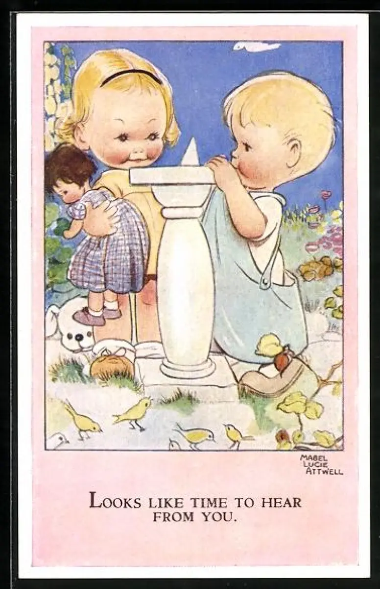 Künstler-AK Mabel Lucie Attwell: Kinderpaar mit einer Puppe