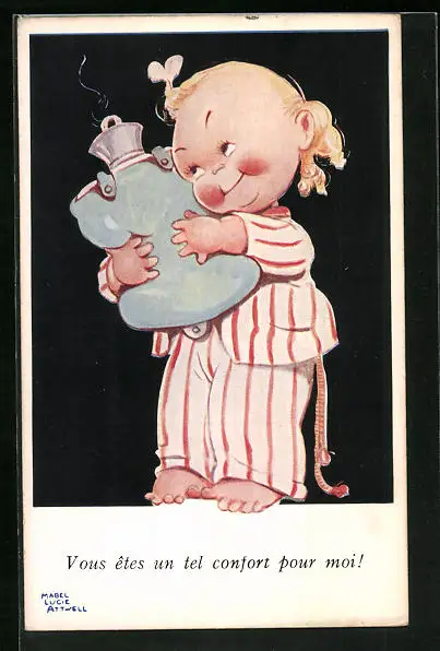 Künstler-AK Mabel Lucie Attwell: Mädchen umarmt Wärmflasche