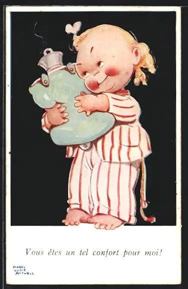 Künstler-AK Mabel Lucie Attwell: Mädchen umarmt Wärmflasche