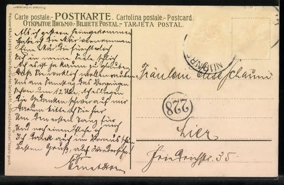 alte Ansichtskarte, gelaufen, Briefmarke entfernt, guter Zustand