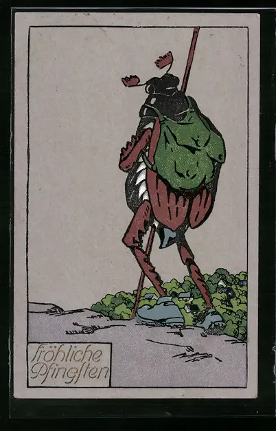 Künstler-AK Maikäfer auf Wanderschaft, Pfingstgruss