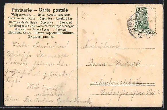 alte Ansichtskarte, gelaufen, Briefmarke entfernt, guter Zustand