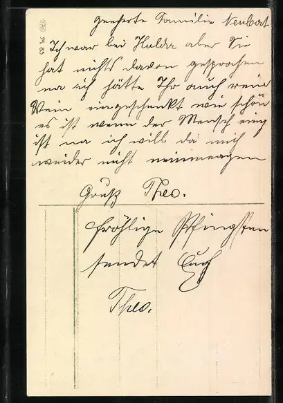 Personenbezogene Daten auf der Rückseite der Karte wurden durch blauen Textmarker unkenntlich gemacht. Die blauen Stellen sind auf die Vorderseite durchgeweicht und wirken sich negativ auf das Postkartenfoto aus