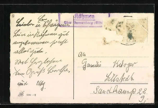 alte Ansichtskarte, gelaufen, Briefmarke entfernt, rückseitig Oberflächenschaden, guter Zustand