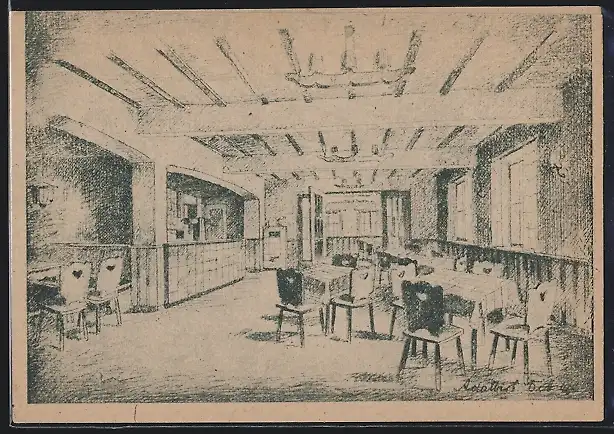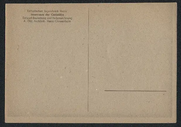 Künstler-AK Mainz, Innenraum der Gaststätte, Katholisches Jugendwerk