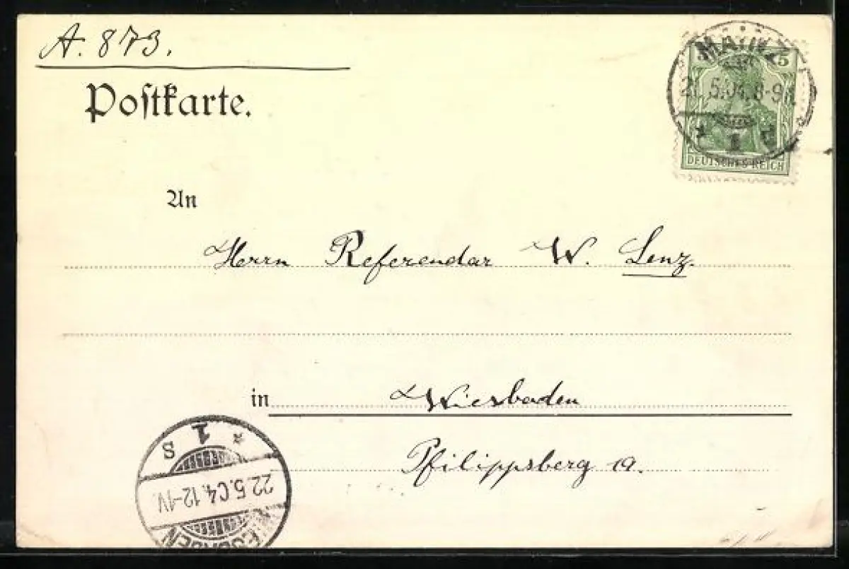 alte Ansichtskarte, gelaufen 1904, Stempelspur, guter Zustand
