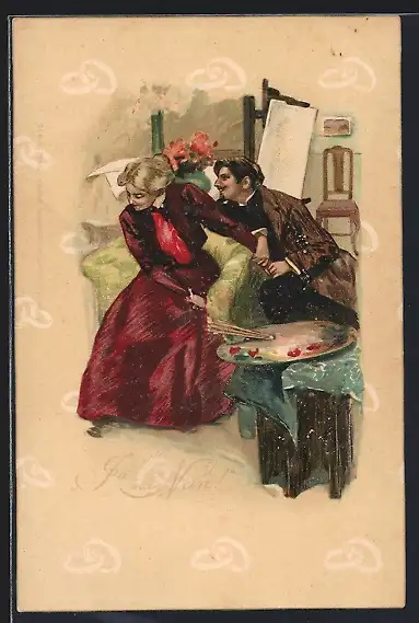 Künstler-AK Maler bedrängt sein Modell