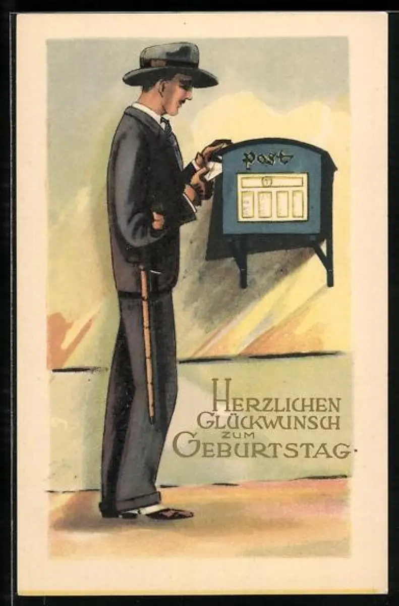 Künstler-AK Mann im Anzug wirft einen Brief in den Briefkasten