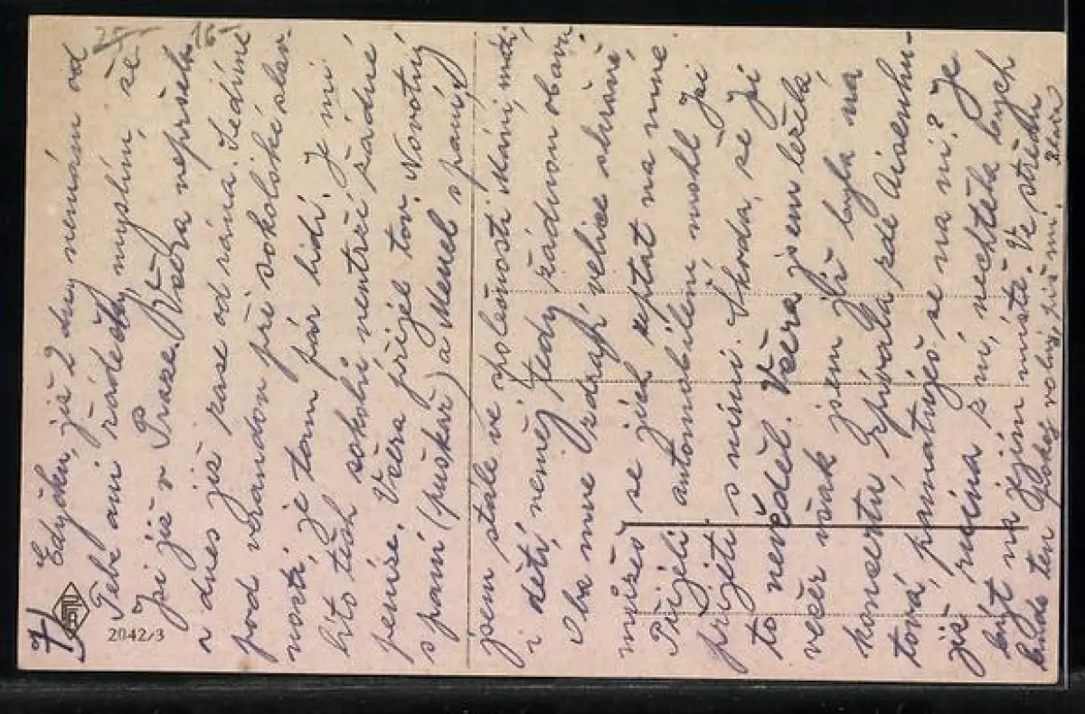 Personenbezogene Daten auf der Rückseite der Karte wurden durch blauen Textmarker unkenntlich gemacht. Die blauen Stellen sind auf die Vorderseite durchgeweicht und wirken sich negativ auf das Postkartenfoto aus