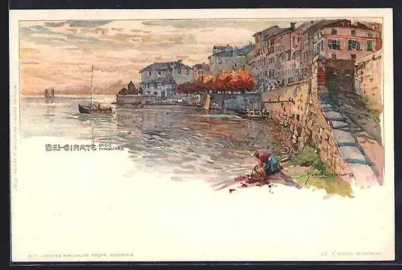 Künstler-AK Manuel Wielandt: Belgirate, Lago Maggiore, Ortspartie