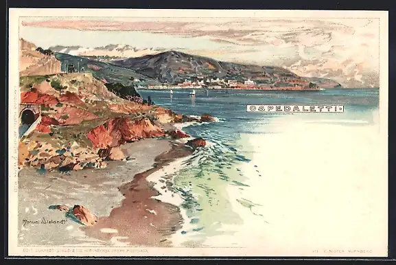 Künstler-AK Manuel Wielandt: Ospedaletti, Ortsansicht vom Meer aus