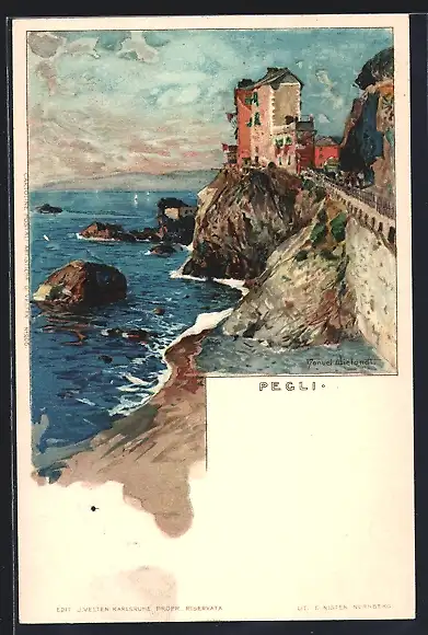 Künstler-AK Manuel Wielandt: Pegli, Ortsansicht mit Meer