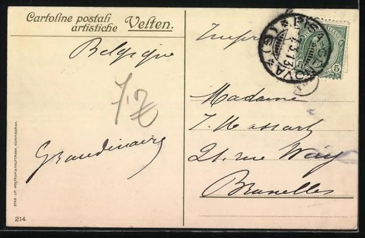 alte Ansichtskarte, gelaufen 1913, Stempelspur, guter Zustand