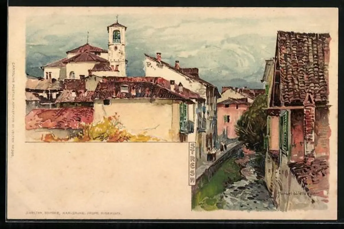 Künstler-AK Manuel Wielandt: Stresa, Ortspartie am Bach